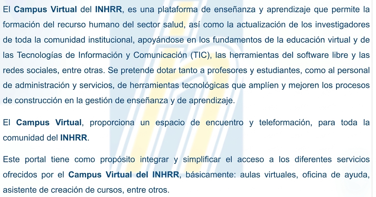 Si no puedes acceder al CVINHRR con las credenciales enviadas, deberás escribir al correo electrónico: campusvirtualinhrr2019@gmail.com y con gusto atenderemos tu solicitud.
